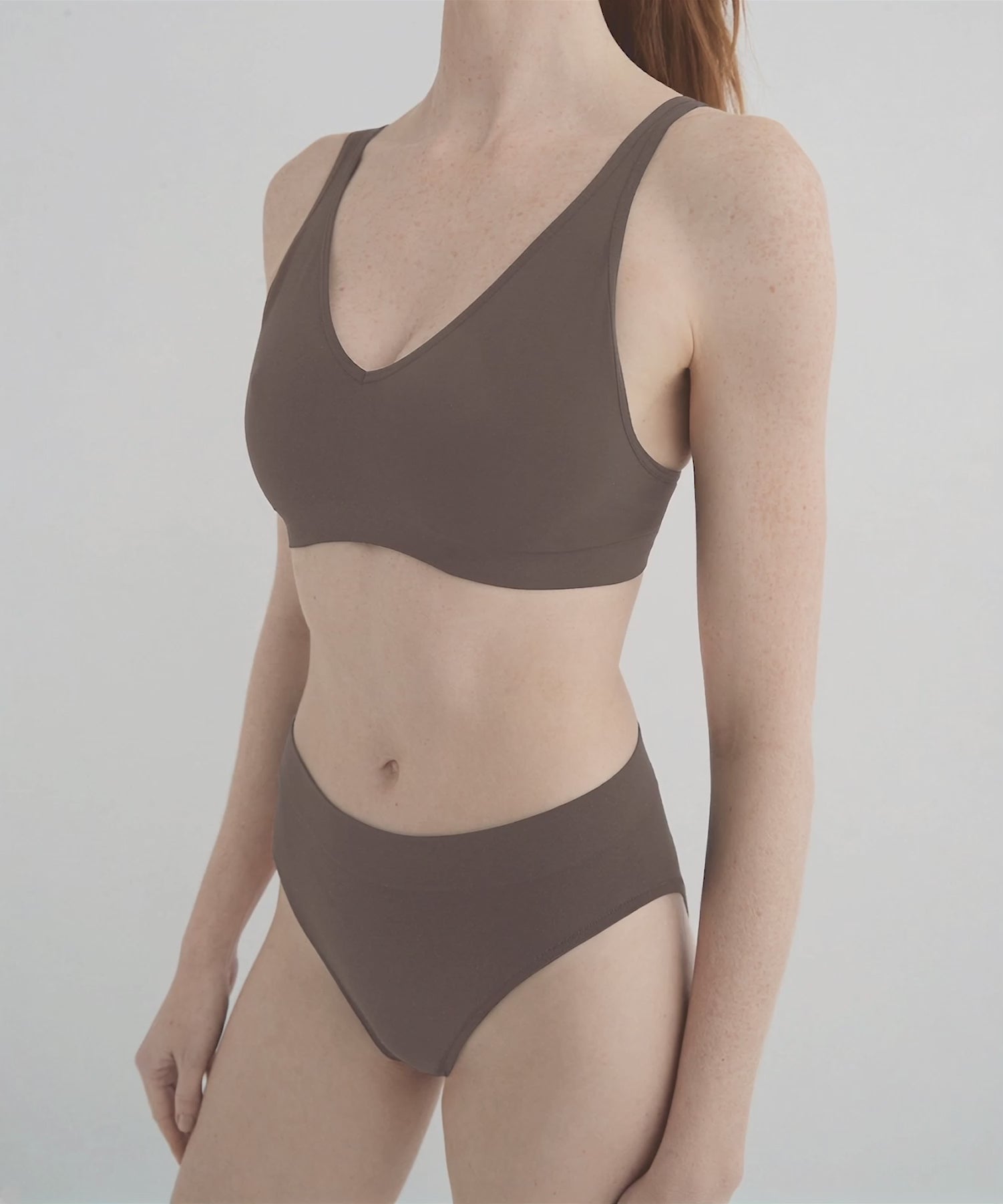 A high-rise silhouette with a seamless finish gently sculpts to the natural contours of the body. Crafted in cocoa, drawing from the rich warmth of sun-touched earth. This style comes in a pack of three.