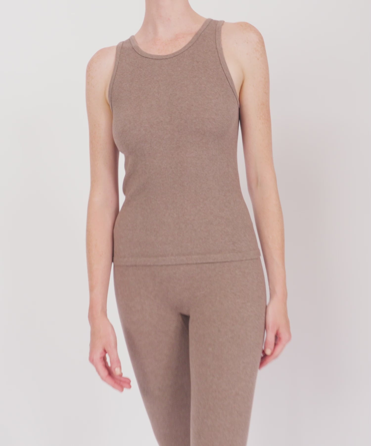 A high-neck essential base layer, designed without seams to cocoon the body in ultra-soft comfort. Crafted in hazelnut mélange, echoing the warmth of a fall’s final harvest.