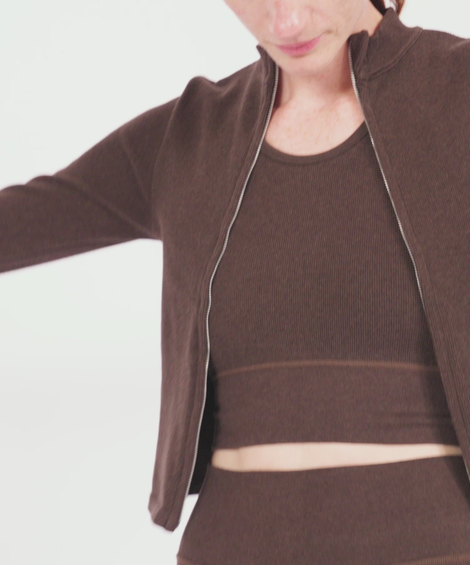 Tilda Crop Full Zip Jacket - Sepia Mélange