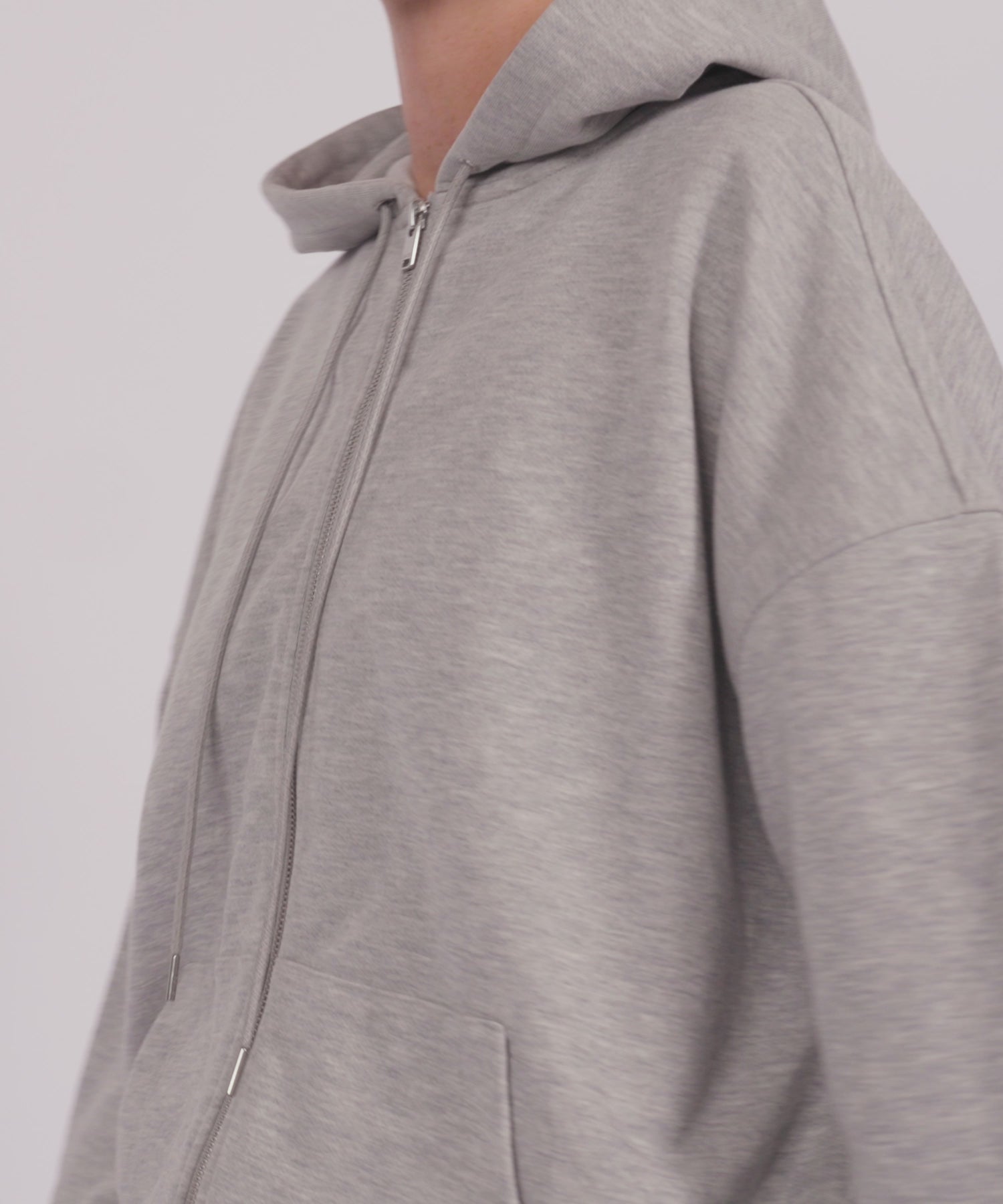 An oversized hoodie with front pocket and full-zip closure creates relaxed comfort in plush French Terry, perfect for cozy days at home or casual outings. Crafted in heather grey, capturing the soft wildness of highland moors.