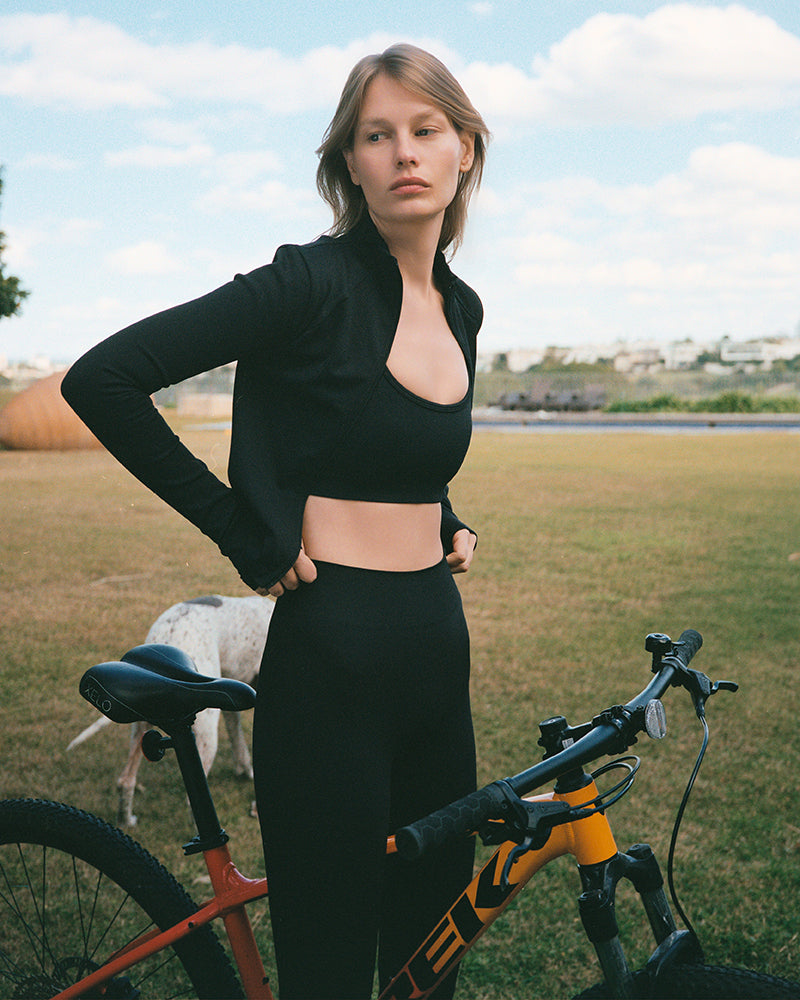 The double-layer fabric feels substantial against your skin without bulk, creating a smooth silhouette that looks intentional whether you're pairing it with tailored trousers or keeping it casual with the matching shorts.